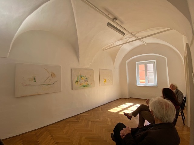 Jeden Samstag um 11:00 (während der Ausstellungsdauer bis zum 3. April), steht Luschin für Gespräche mit den Besuchern bereit. Der Austausch ist für sie sehr wichtig, um zu sehen, „was allgemein mehr, was weniger verstanden wird.“ Ein Kunstwerk ist Zeit. Ein Kunstwerk braucht Zeit. Beim Entstehen. Beim Wachsen. Beim Betrachten. Beim Erleben. Es ist mehr als ein Stil. Mehr als ein Preis. Mehr als die Striche und Farben. Mehr als Geschmackskomponenten und Feuilleton-Kritik. „Ein Spiegel ist’s doch allemal!“