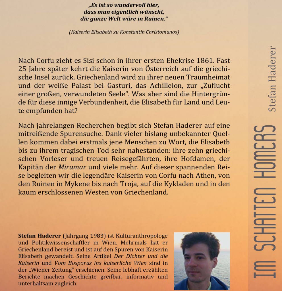 Kaiserin Elisabeth. Landläufig die „Sisi“. So sehen in ihr viele eine Kaiserin zum Anfassen. Doch war sie sehr freiheitsliebend und facettenreich. Welch ein Segen waren ihr Möglichkeiten, dem höfischen Korsett zu entkommen. In die Ferne zu schweifen. So begab sie sich gerne auf Reisen. Eine ihrer faszinierendsten Destinationen fand sie in Griechenland. Der Wiener Kulturanthropologe und Politologe Stefan Haderer begibt sich in seinem historischen Sachbuch „Im Schatten Homers. Kaiserin Elisabeth in Griechenland“ auf die Spuren dieser kaiserlichen „Odyssee“ und erzählt darüber im KULTURTODATE-Interview.