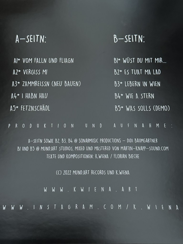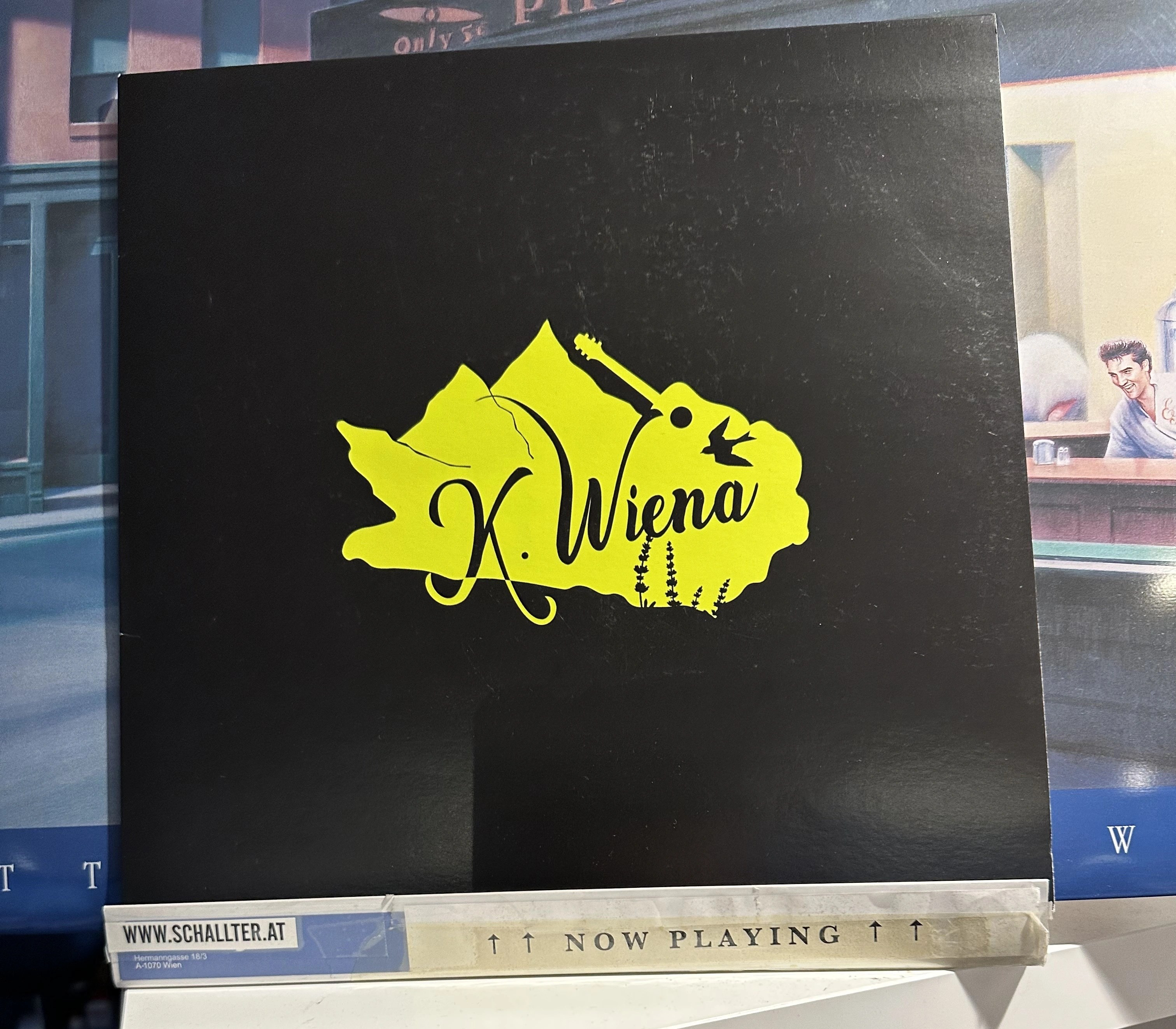 „Gfühl“. Ich mache die Tür auf und lasse die fette Portion Lautes, Eiliges und Gewöhnliches auf der Straße zurück. Für ein geduldigeres Früher. Ein Store voller Schallplatten, die Musik greifbarer machen und ihr den Raum geben, der ihr in der Fülle digitaler Schnelllebigkeit abhanden gekommen ist. Ich schaue mich neugierig um und finde sogar Musikkassetten. So „Hördinger“, die sich trotzig und uneitel ihrer Unsichtbarkeit im Mp3- und Spotify-Wust einer sich zunehmend abstrahierenden Welt widersetzen. K. Wiena hat für die Präsentation seines neuen Vinyl-Albums eine treffliche Location gefunden.